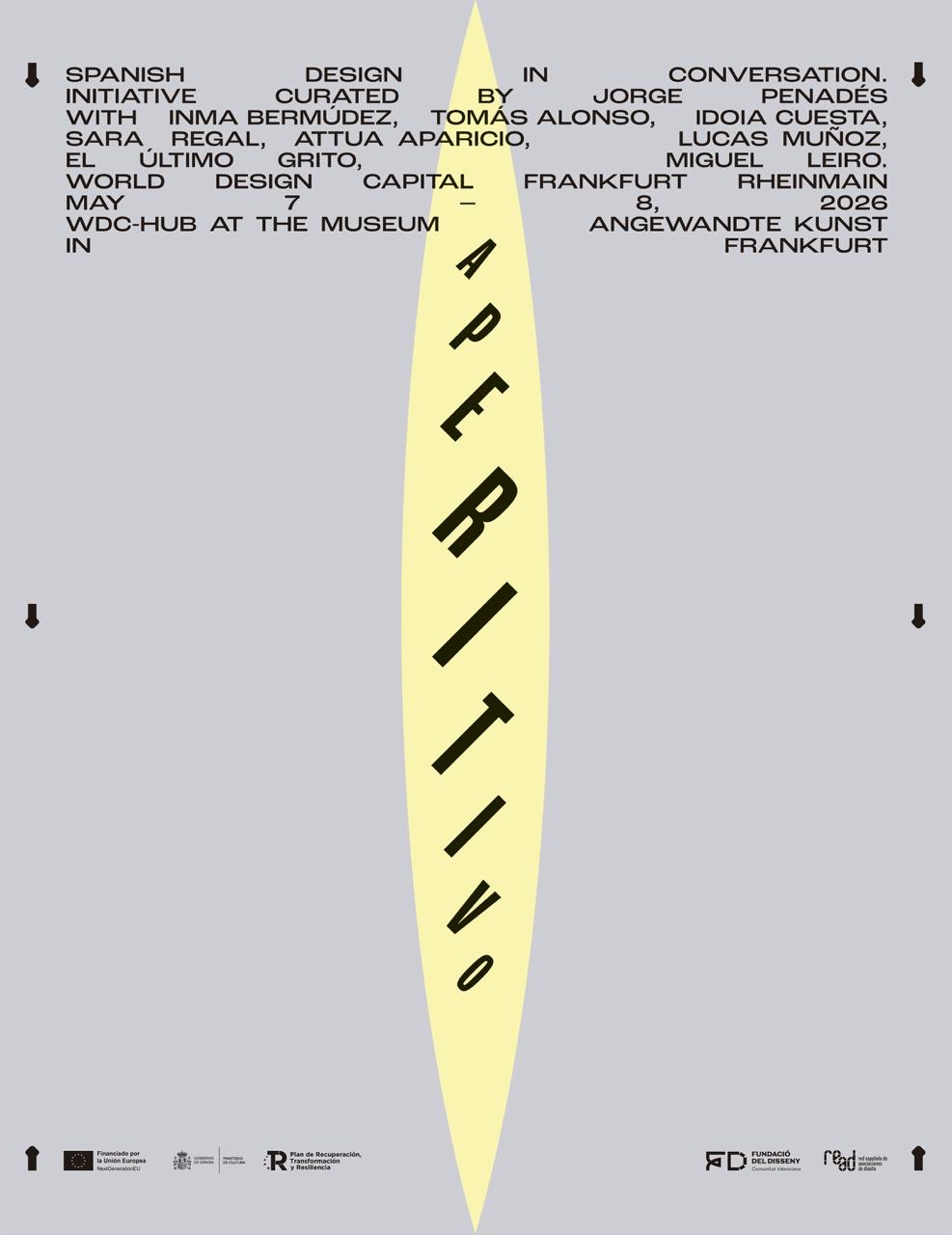 «Aperitivo: Spanish Design in Conversation», comisariado por el diseñador Jorge Penadés, propone un formato innovador que se aleja de la exposición tradicional para plantear el diseño como espacio de encuentro. El diseñador malagueño, ha abordado este proyecto como un reto sobre la reinterpretación de materiales y técnicas, con una instalación concebida específicamente para el espacio que se desvelará en el WDC-Hub (Museum Angewandte Kunst) de Frankfurt los días 7 y 8 de mayo de 2026. Un espacio en el que se conversará y generará intercambio de conocimiento entre ocho perfiles del diseño español y profesionales alemanes.
